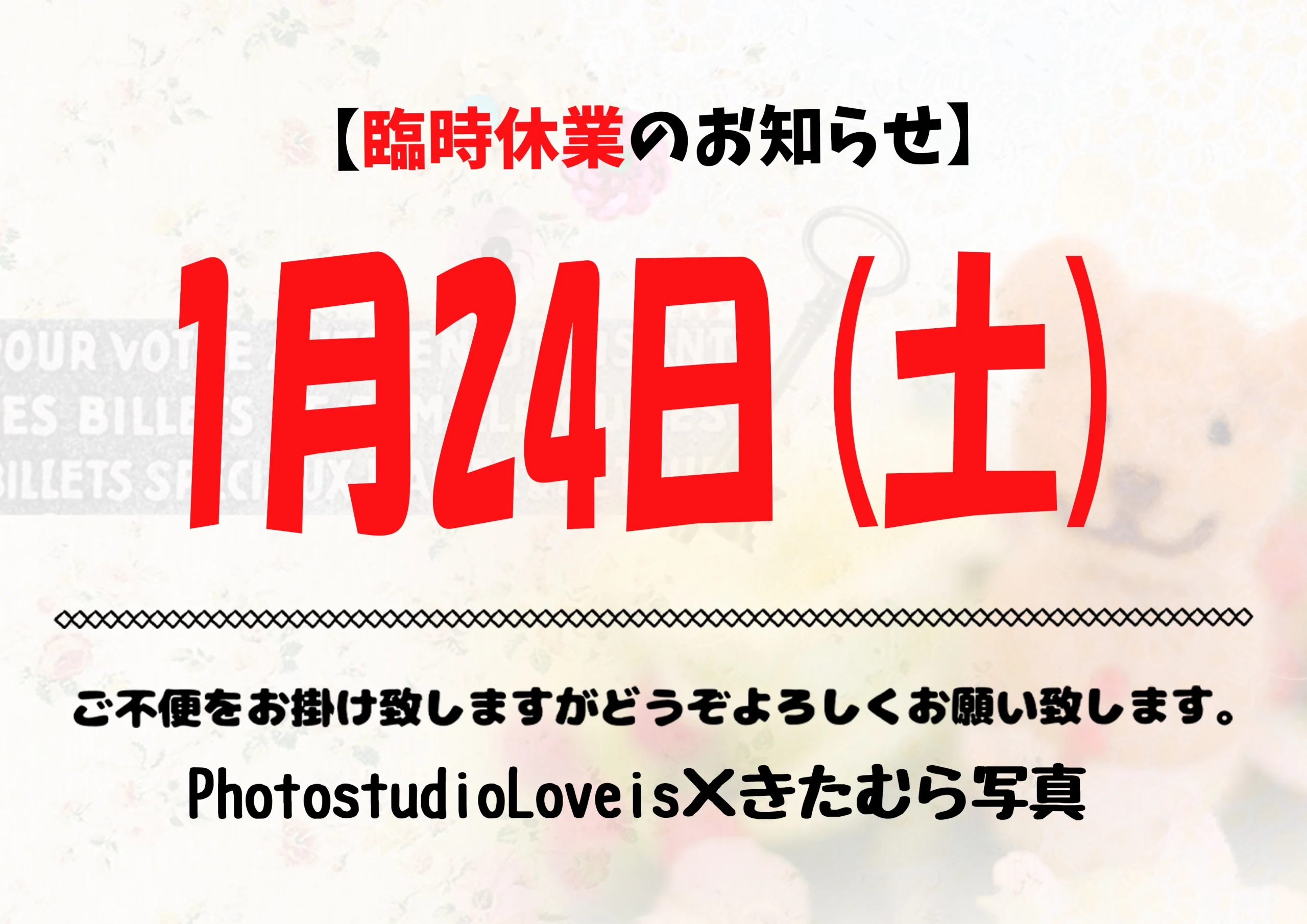 2026年1月24日(土)臨時休業のお知らせ